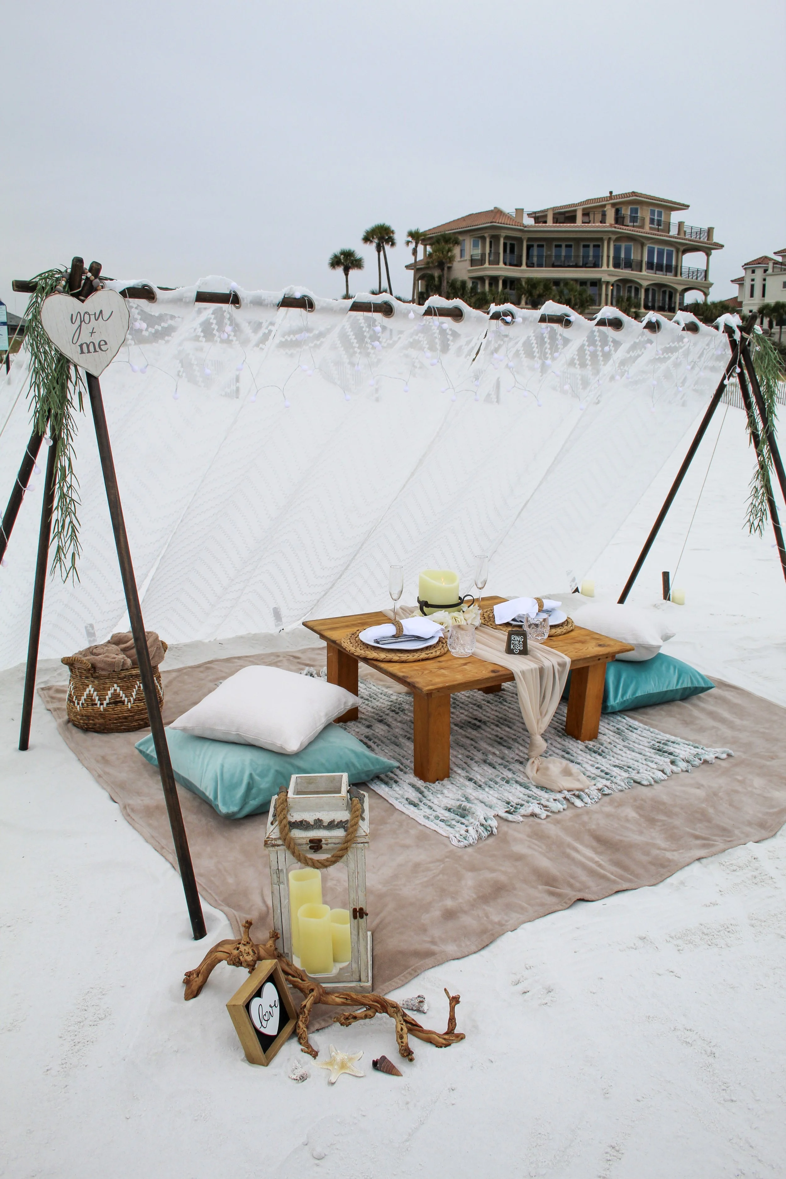 Our most romantic and premium package, featuring a vintage fringed cabana and elevated styling to create a truly intimate and unforgettable experience.